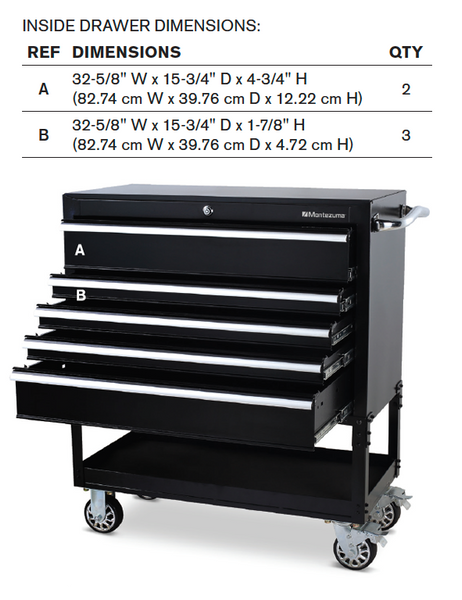 Das 36 x 17 Zoll Stahl Dreieck??Werkzeugkasten und 36″ 5-Schubladen Fahrstuhlkombi?ist perfekt für Gärten oder Werkstätten.